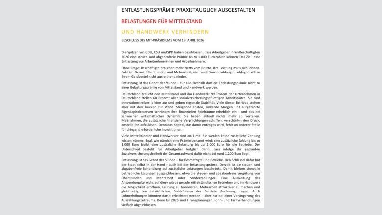 BESCHLUSS DES MIT-BUNDESVORSTANDS VOM 13. März 2026